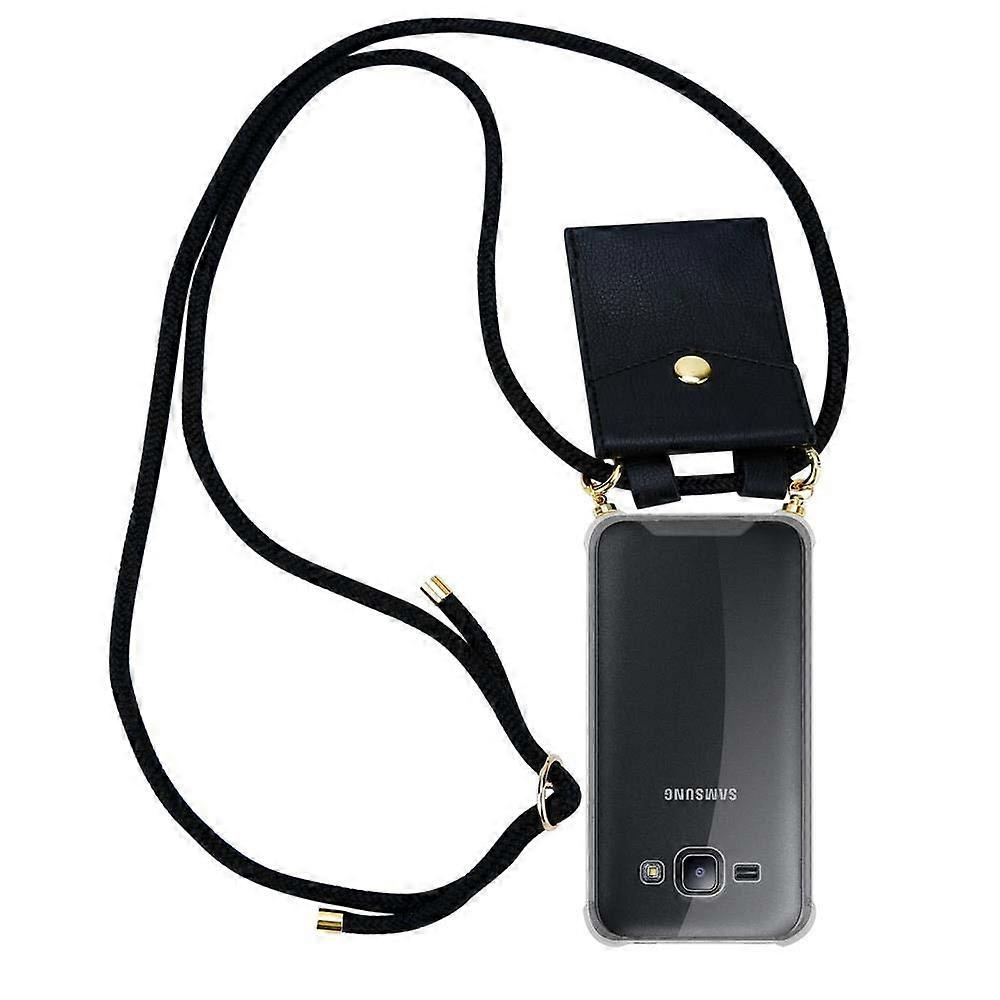 Handy Kette für Samsung Galaxy J1 2015 Silikon Schutzhülle - Kordel mit goldenen Elementen