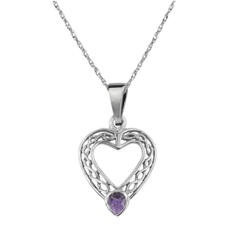 Celtic Eternity Knotwork Love Heart Necklace Pendant - Amethyst Colour Stone