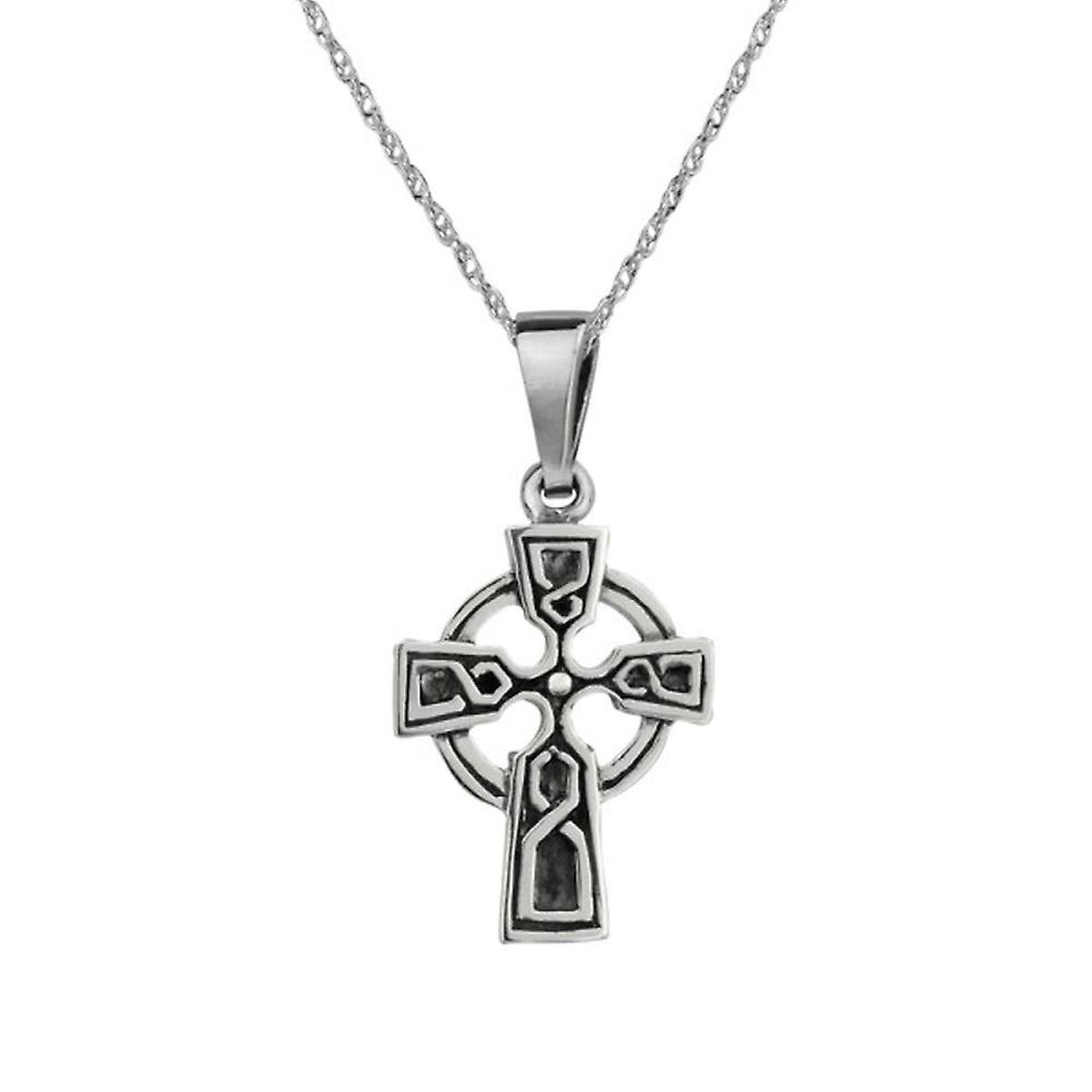 Celtic Eternity Knotwork Stone Carved Cross Necklace Pendant - Includes A 22"Silver Chain