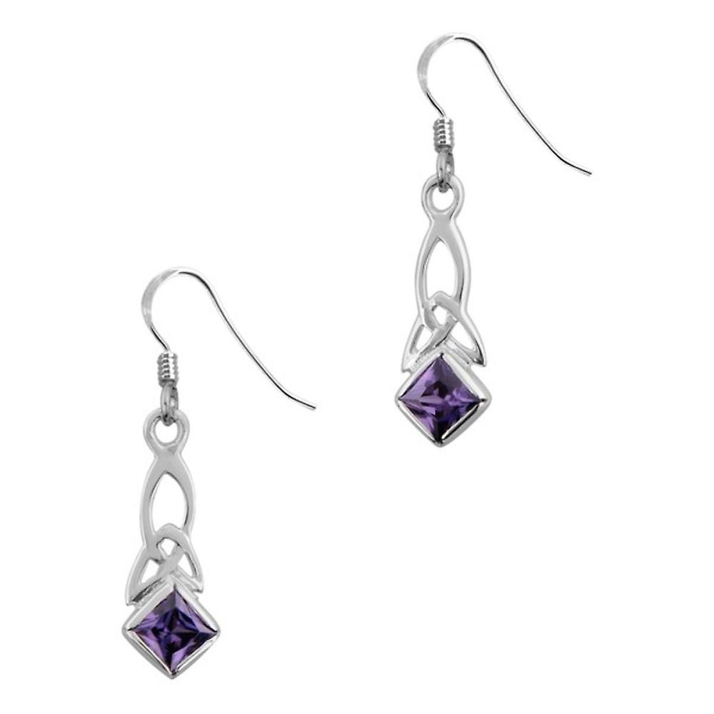 Celtic Holy Trinity Knot Drop Style Pair Of Earrings - Amethyst Colour Stone