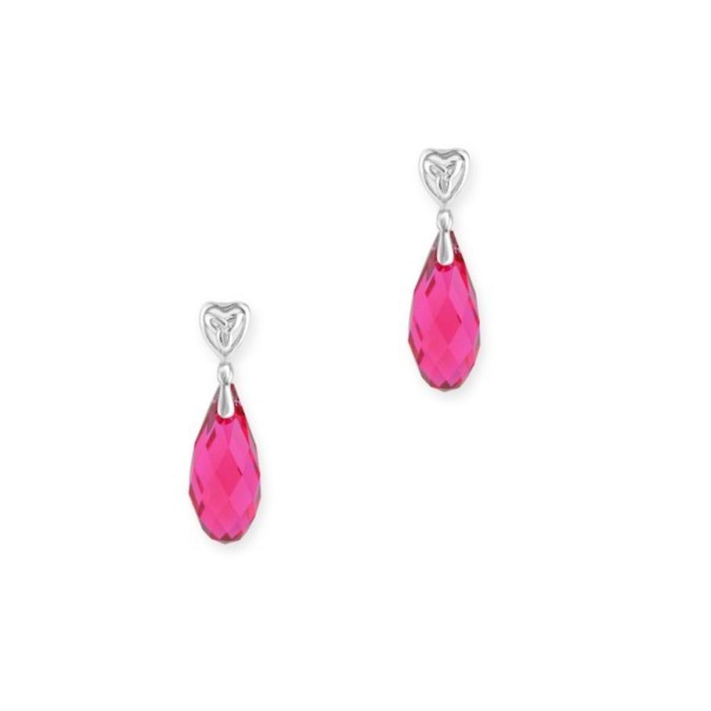 Celtic Holy Trinity Knot Love Heart Shaped - Teardrop Pair Of Earrings - Pink Swarovski� Crystals