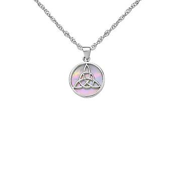 Celtic Holy Trinity Knot Round Shaped Necklace Pendant - Mother Of Pearl - Includes A 16"Silver Chain