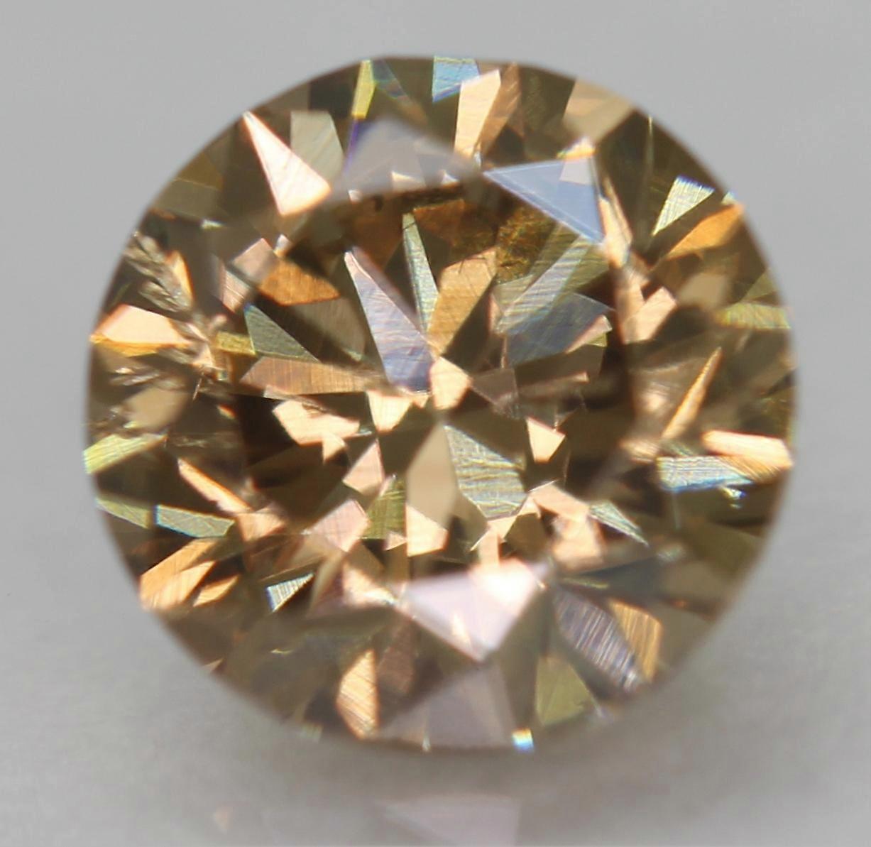 Cert 0.54 Carat Fancy Yellow Brown VS2 Round Brilliant Natural Diamond 5.1mm