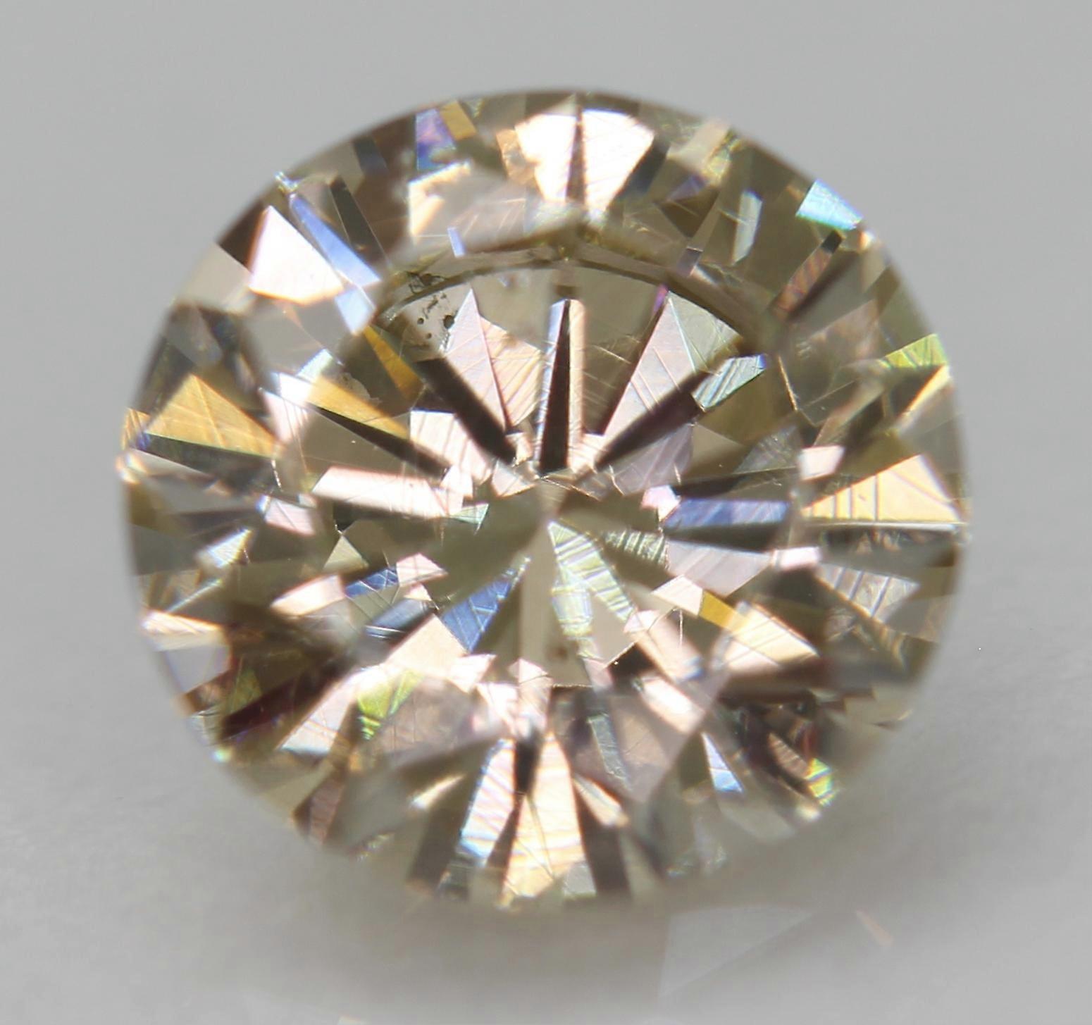 Cert 0.80 Carat Yellow Brown VVS2 Round Brilliant Natural Enhanced Diamond 6.08m