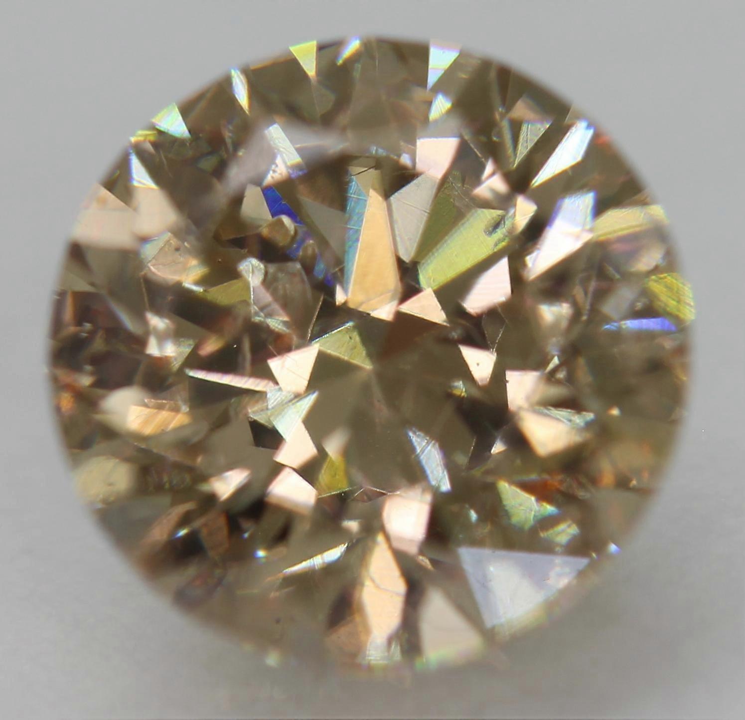 Cert 1.14 Carat Yellow Brown VVS2 Round Brilliant Natural Enhanced Diamond 6.53m