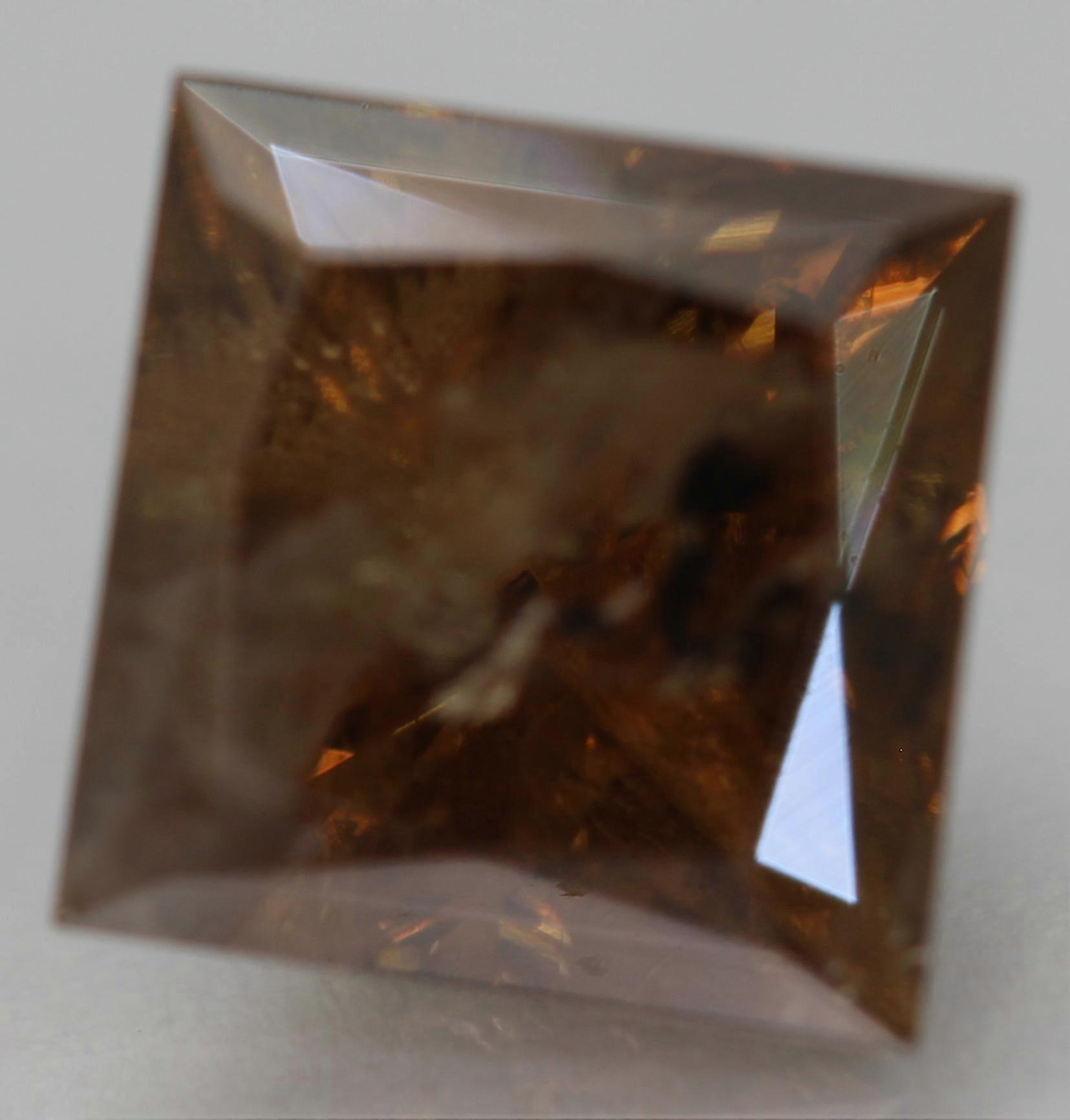 Cert 2.15 Carat Vivid Yellow Brown Princess Natural Enhanced Diamond 6.79x6.73mm