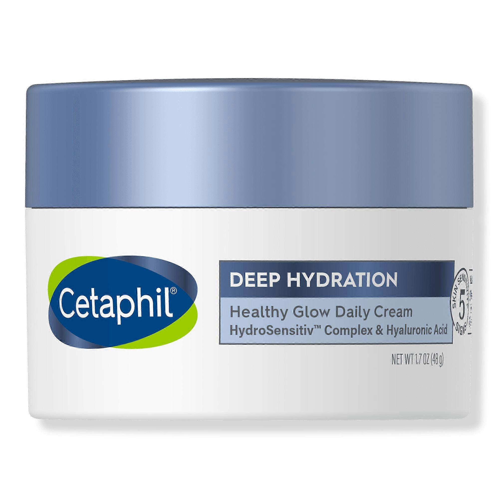 Cetaphil Deep Hydration Healthy Glow Daily Cream Fragrance-Free replenishs skin's hydration for 48 hours. Rehydrate and soothe dry, dehydrated sensitive skin. Lightweight, non-greasy formula leaves skin soft and supple. Designed for sensitive skin, won't clog pores or irritate. Benefits Ideal for dry and dehydrated skinLeaves skin immediately soft and suppleLightweight and non-greasy creamReplenishes skin's hydration for 48 hoursNon-comedogenicHypoallergenicDEFENDS AGAINST 5 SIGNS OF SKIN SENSITIVITY: Dryness, irritation, roughness, tightness and a weakened skin barrierRehydrates and soothes Key Ingredients Hyaluronic AcidNiacinamideVitamin B5Vitamin E Formulated Without Fragrance Suggested Use: Use every morning and night after cleansing, gently smoothing over face and neck. UPC: 000002586971 Weight: 0.61 lbs