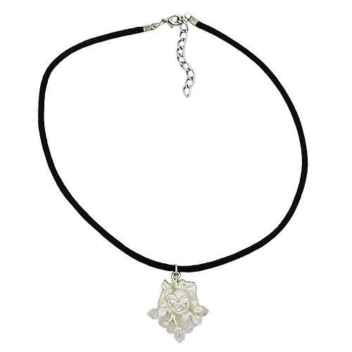 Kette 32x27mm Anhänger Kunststoff Rose silberfarbig Kordel schwarz 38cm