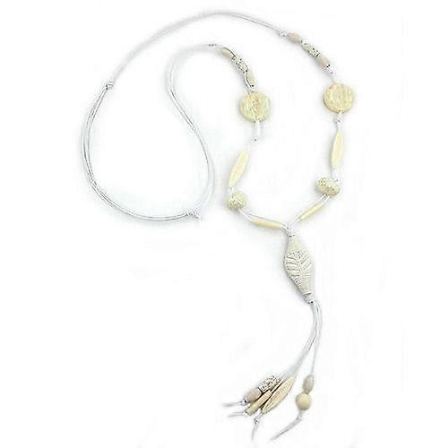 Kette 40x18mm Blatt Kunststoff elfenbeinfarben Kordel weiß 100cm
