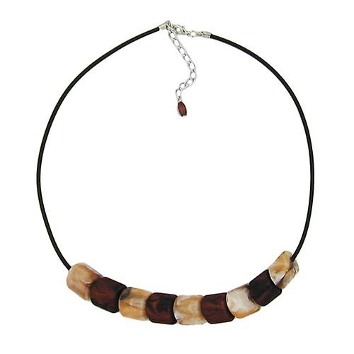 Kette Schrägperle Kunststoff braun-marmoriert und beige-marmoriert Vollgummi schwarz 45cm