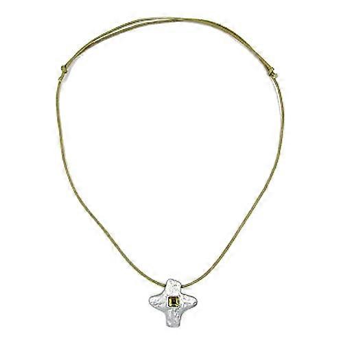 Kette Anhänger Kreuz Metallguss matt-silberfarben Glasstein Kordel oliv 70cm