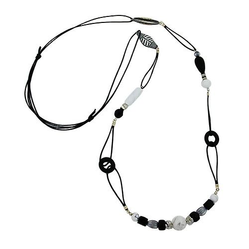 Kette Kunststoffperlen schwarz-weiß Kordel schwarz 105cm