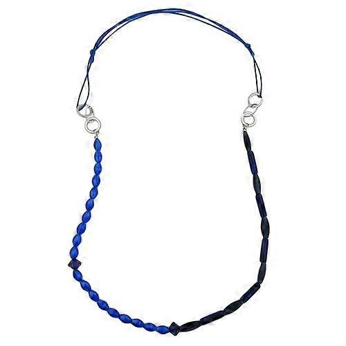 Kette Kunststoffperlen blau Metallringe rhodiniert Kordel blau 90cm
