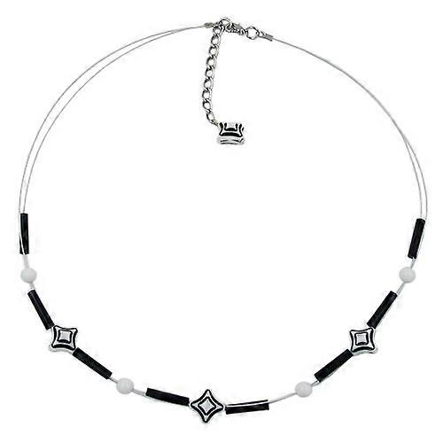 Kette Drahtkette Karoperle schwarz-weiß Kunststoffperlen 45cm