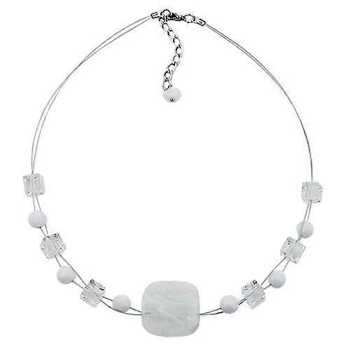 Kette Drahtkette flaches Viereck weiß-transparent-marmoriert Kunststoffperlen 42cm