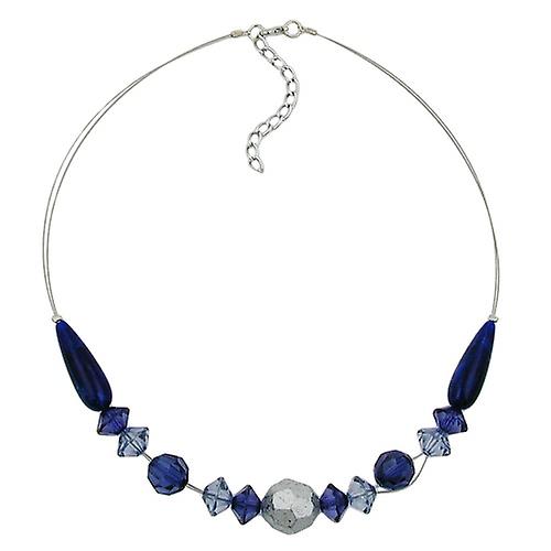 Kette Drahtkette Wabenperle silber-matt rauchblau Kunststoffperlen 45cm