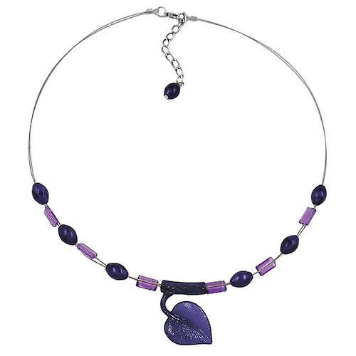 Kette Drahtkette Blatt lila-flitter Kunststoffperlen 45cm