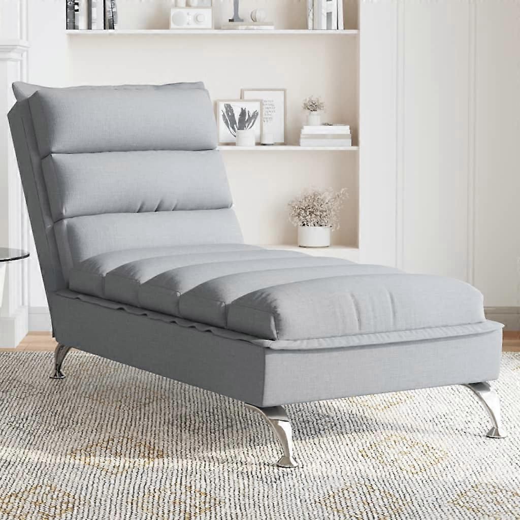 Farbe: HellgrauMaterial: Stoff (100 % Polyester), Sperrholz, verchromter StahlFüllmaterial: Schaumstoff, PP-FaserGesamtabmessungen: 133,5 x 56 x 74 cm (L x B x H)Sitzgröße: 97,5 x 56 cm (L x B)Sitzhöhe vom Boden: 37 cmGröße der Rückenlehne: 51 x 45 cm (B x T)Rückenlehne ist nicht verstellbarMaximale Belastbarkeit: 110 kgZusammenbau erforderlich: JaLieferung umfasst:1 x Chaiselongue1 x Sitzpolster1 x Rückenkissen