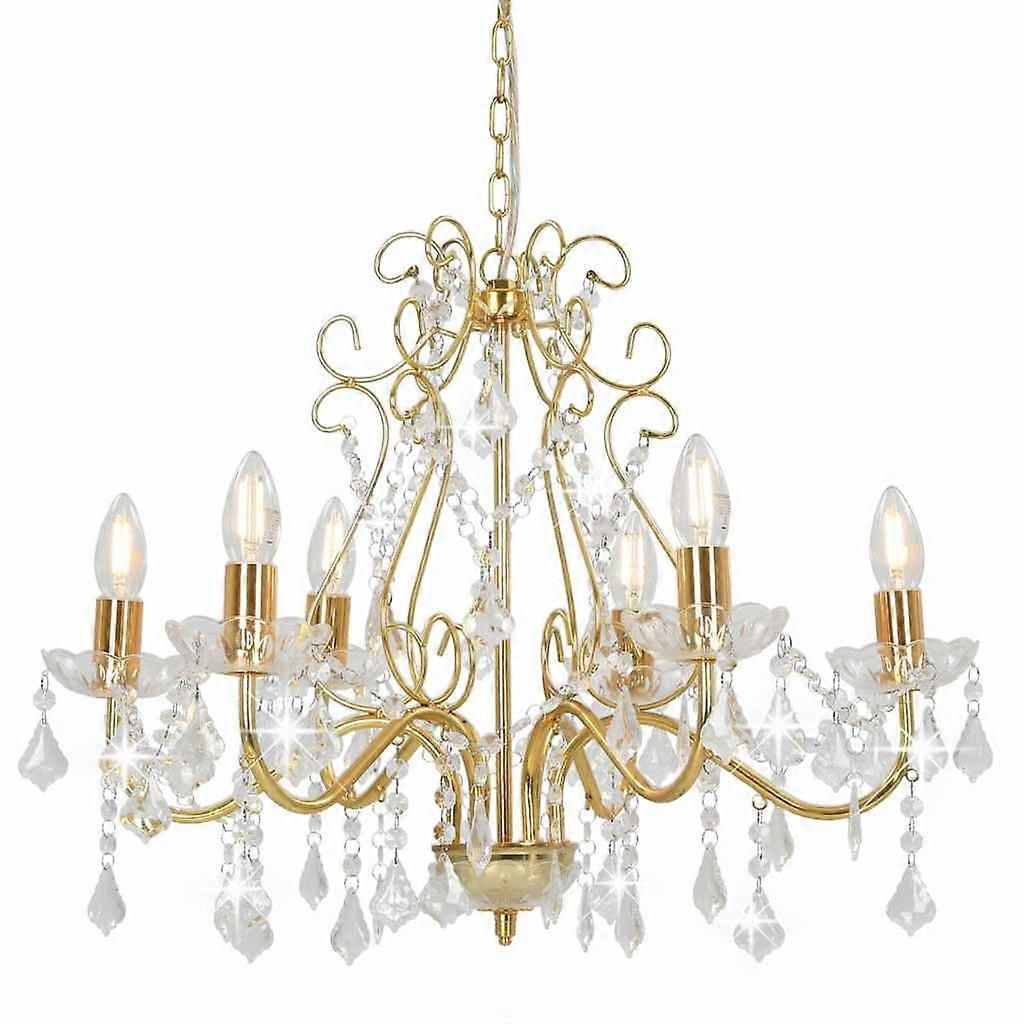 Kronleuchter mit Kristallperlen Golden Rund 6×E14