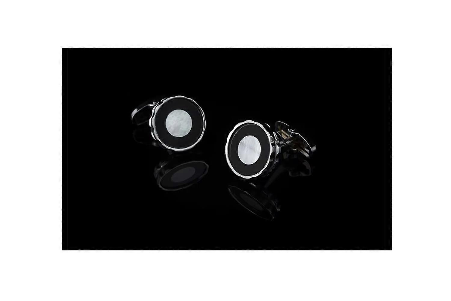 Charles William Black Cufflinks with Round Mother Pearl Circle