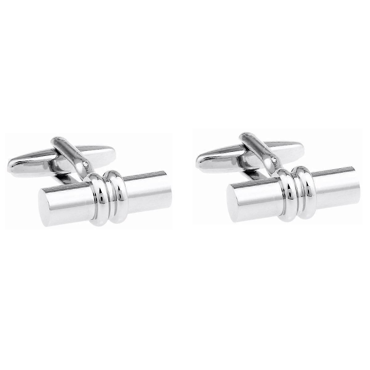These quality cufflinks are silver colour and have a unique two stripe design on the round barrel shape which makes them a classy looking pair.All our cufflinks come with a free presentation pouch.Item is in stock, has been inspected and is ready for immediate dispatch.