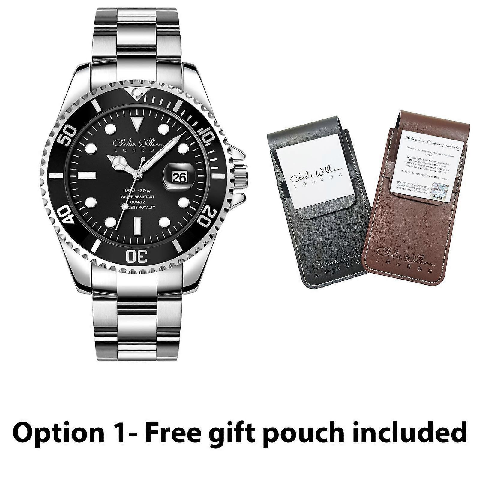 Charles WIlliam Mens Watch Black Silver Date Designer Watches