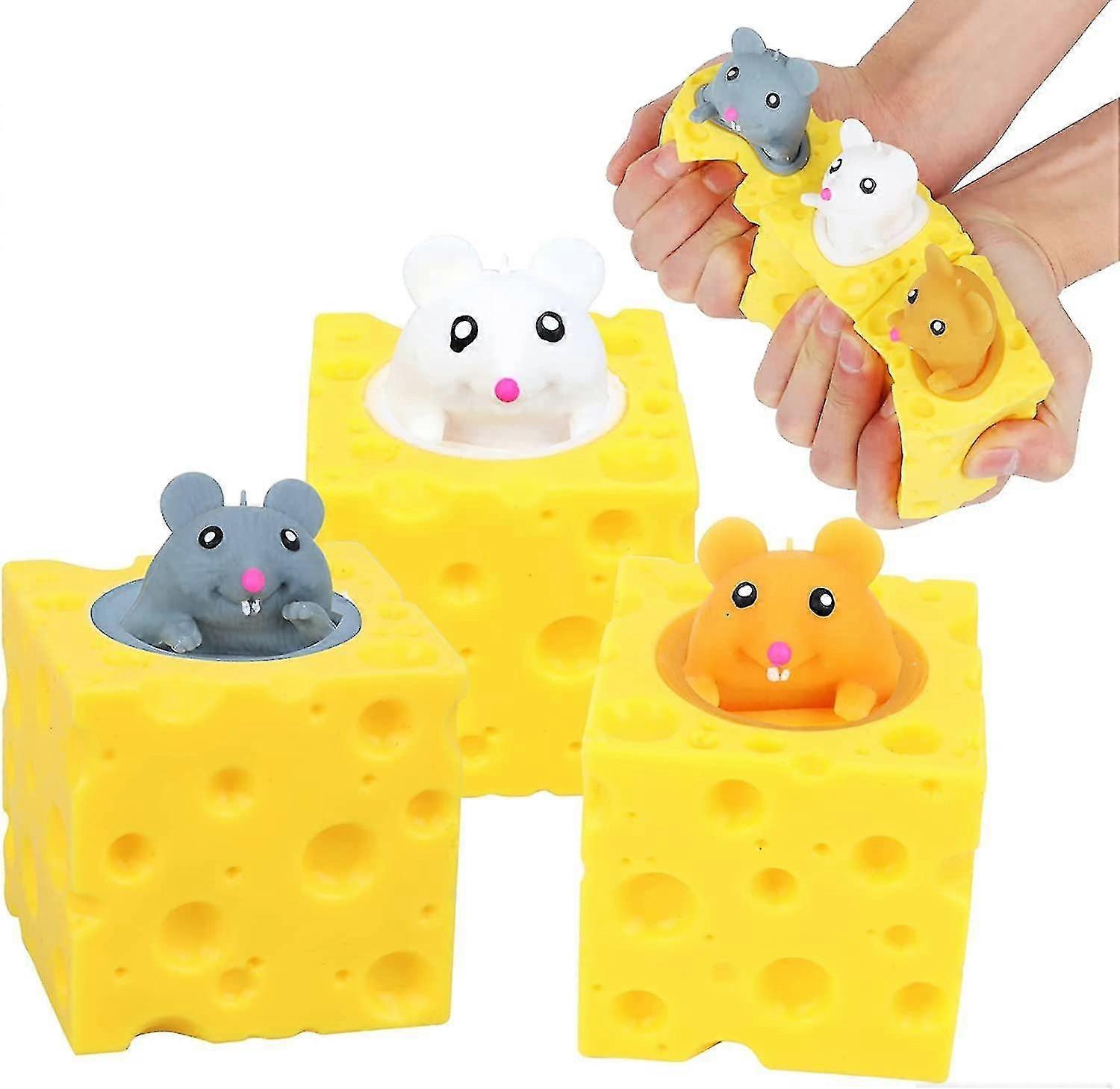 Super value package You will receive 3 kind colorful squeeze cheese mouse toys. square shape of mouse cheese cup. The decompression toy can relieve stress.This multipurpose silicone squeeze toy is the perfect game for parents, elderly, children, and adults to play.High-quality material These squeeze cheese mouse toys are fashionable and lovely.And they are made of high-quality silicone material with eco-friendly.They are safe and durable enough for your child to play.Cleans easily with soap and water.You can carry it all the time.Stress relief Feeling stressed and nervous? Just play it. This silicone squeeze toy will sooth your soul and get you feeling peace fast. Effectively relieve your stress and anxiety of long hours of work and study.Easy to play You can play with these toys by simple pinching movements, the mouse cheese will bring you happiness.when you squeeze hard, the evil little mouse will come out of the cheese when loosen the cheese,the little mouse will go back into the cheese and be reusable.The perfect gift If you don't know how to make your loved ones or special people who need to relax and reduce tension, please let them enjoy the joy of squirrel squeeze cheese.Product DescriptionCheese mouse educational decompression toy, which can help you relieve stress and restore the mood by squeeze the cheese.When you are unhappy, a toy will instantly make you full of vitality.The cute little mouse is very comfortable in your hand, easy to Carry Anywhere, Washable and Reusable.Hold and press to release the pressure, can beat, vent, can pull, and also very cute, it is a good gift to give awaySpecificationsMaterial: TPRSize: As picture showColor: As picture showPackage Include: 3 Squeeze mouse ToysWarm Note1. Please allow slight size errors due to manual measurement.