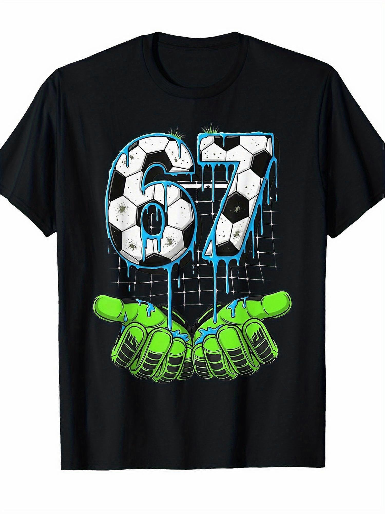 Children's Football "67" T-shirt - Neon Green and Turquoise Football Pattern with Drip Design T-shirt