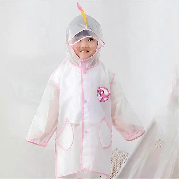 Children's Raincoat Poncho with Schoolbag-Pink Dinosaur,Size L Pink Dinosaur
