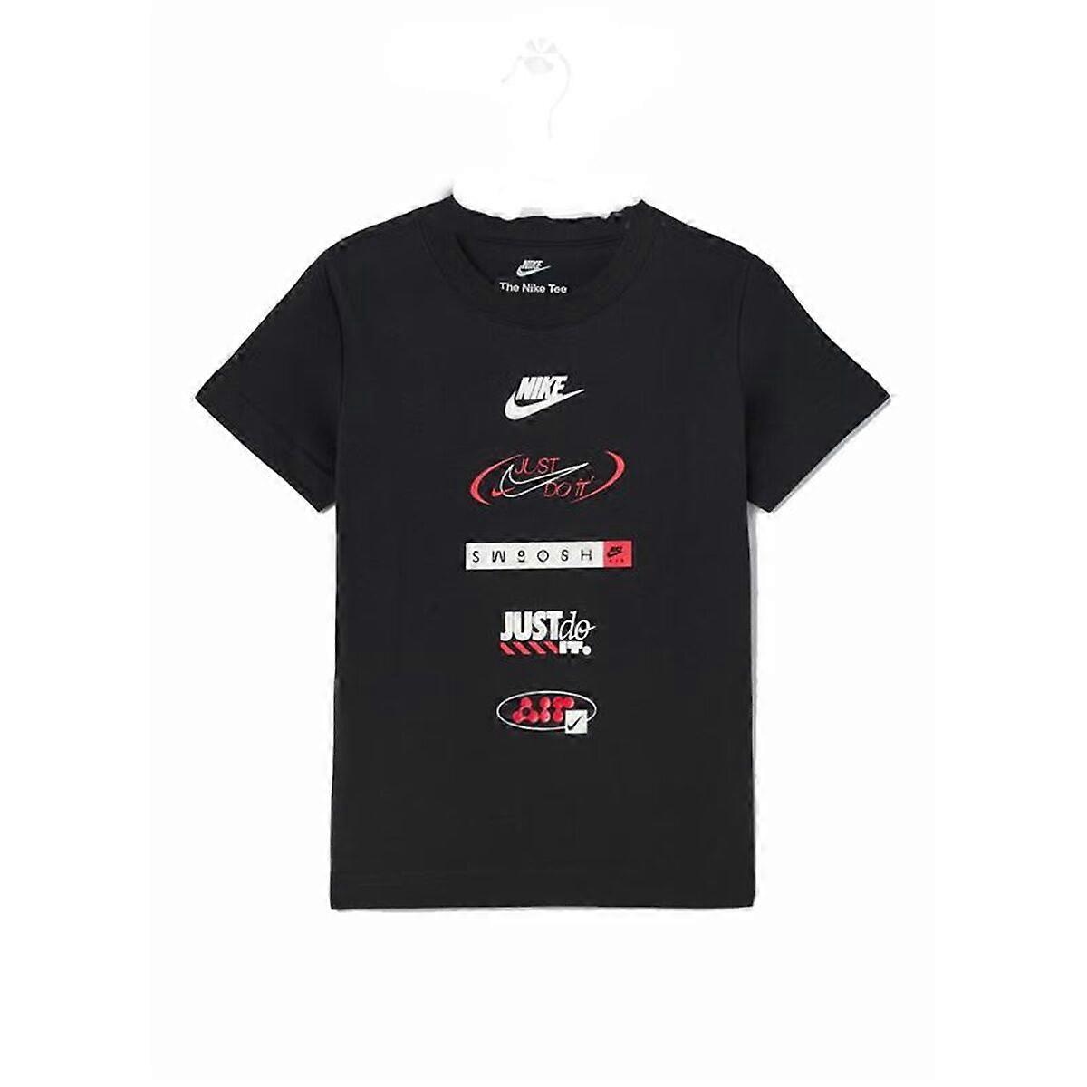 buy Child's Short Sleeve T-Shirt Nike Brandmark Stack Black and other Nike products The best quality at the best price is now within reach The Brandmark Stack by Nike is a short-sleeve kids' t-shirt designed to provide comfort and versatility for any daily activity. Made from a balanced blend of 60% cotton and 40% polyester, it offers a soft feel against the skin and good durability for frequent wear, easily adapting to both playtime and everyday use. It features a black color that is easy to match and maintain, while the classic silhouette and tagless crew neck enhance comfort by preventing irritation, making it especially suitable for active children. This t-shirt stands out for its functional, understated design that fits seamlessly into both sporty and casual outfits. Thanks to quality materials and attention to detail, the Brandmark Stack kids' t-shirt by Nike is a basic, durable, and adaptable garment for the pace of young ones. Type: T-shirtColour: BlackGender: Children'sMen