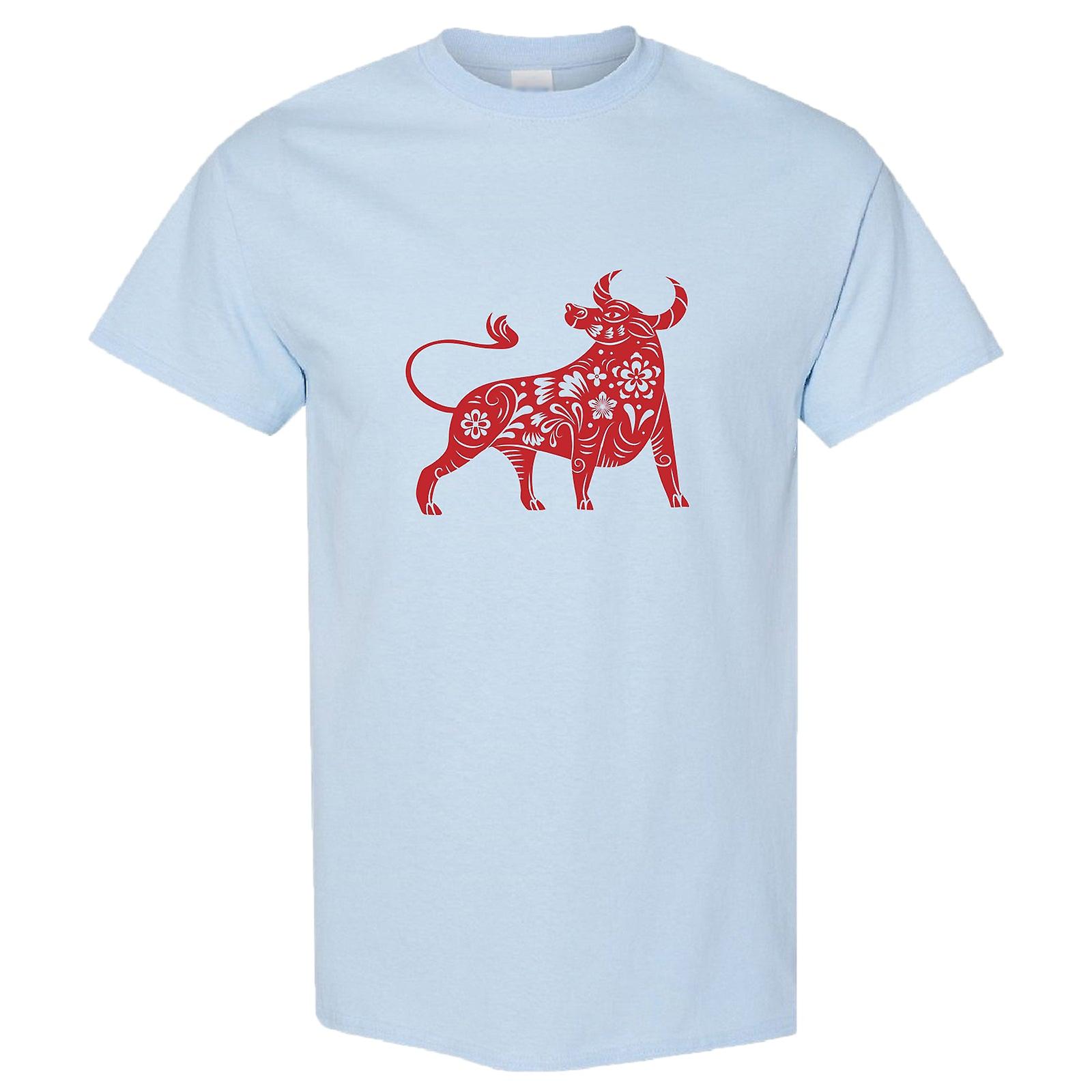Chinese Zodiac New Year Ox Bull Cow Animal Light Blue Men T Shirt Tee Top