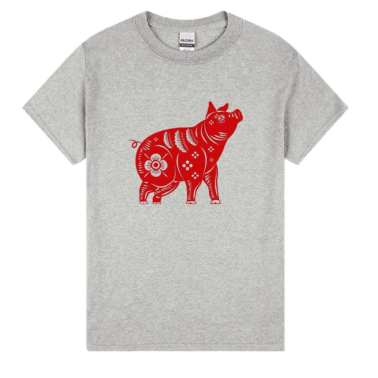 Chinese Zodiac New Year Pig Animal Silhouette Art Grey Mens T Shirt Tee Top