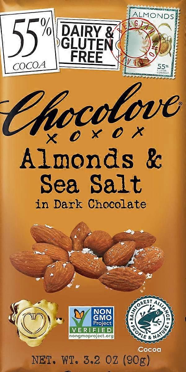 Dark semisweet chocolate, whole dry roasted almonds and sea salt. At first bite, crunchy almonds release their flavor in a swirl with chocolate. The sea salt crystals continually reset your sweet taste buds and make a tantalizing taste combination that keeps you wanting more.Chocolove Almonds & Sea Salt in 55% Dark Chocolate, 3.2oz 55% Dark Chocolate Non GMO Certified Kosher Certified Love poem in every bar All the chocolate is produced in Belgium using ethically and sustainably sourced Rainforest Alliance Certified cocoa All our products are crafted in our own, SQF food safety certified (by Eagle Certification Group) factory in Boulder, CO following the classic European traditions of making chocolate in the mountains We strive to use Non-GMO Project Verified and/or organic ingredients