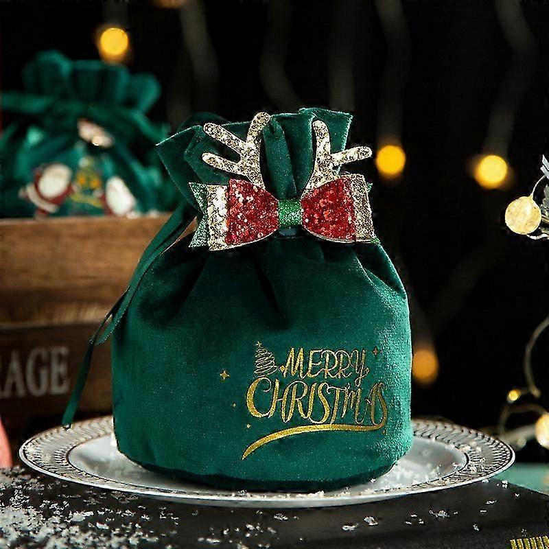 Christmas apple bag Christmas Eve Christmas fruit velvet bag velvet bag Christmas gift dark green - antlers