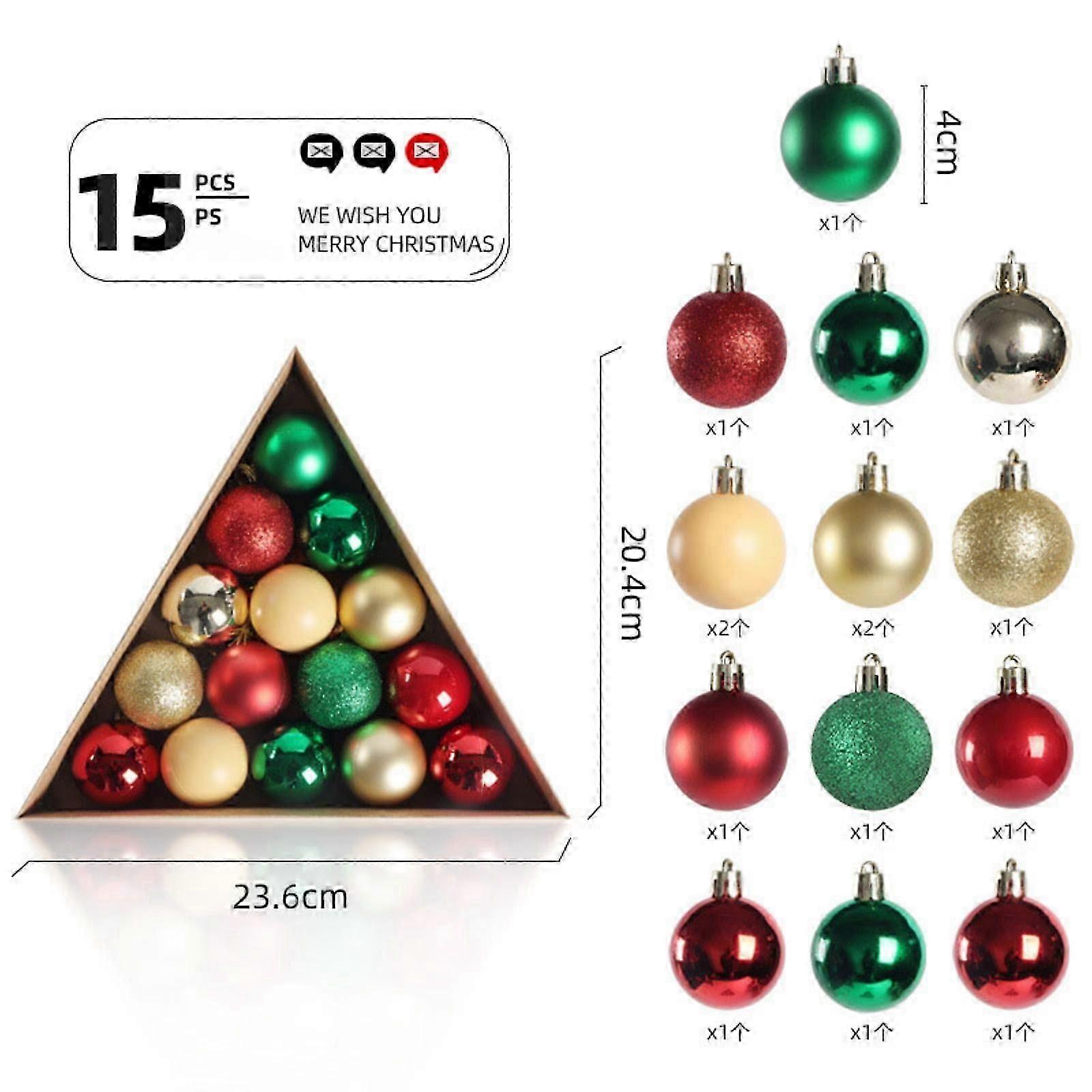 COMPLETE HOLIDAY SET: This 15-piece Christmas ball set is perfect for decorating your tree or adding festive style to any festive setting. With a wide variety of shades, these decorations will enhance your seasonal dcor beauty.Perfect for any occasion: not just Christmas! Good for weddings, parties, and other celebrations, these hanging balls allow you to create a cohesive and stylish theme throughout the event.High-quality design: Made from durable materials, these accessories are designed to last. Their lightweight ensures easy hanging and rearrangement without compromising the integrity of your tree.Effortless decoration: Each ornament has a built-in hanging rope that makes it easy to decorate your tree . Effortlessly turn your space into a holiday wonderland!Thoughtful gift options: Give this beautiful set of accessories to share the joy of the season. Good for friends and family who love to decorate, this set is a thoughtful addition to anyone's holiday collection.Christmas balls Size4cm/1.57"