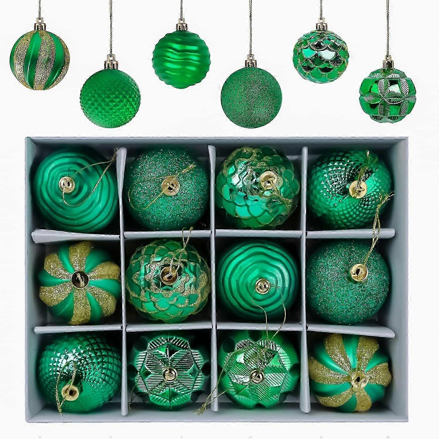 Christmas Balls, 12 Pieces Christmas Tree Balls Christmas Balls, Christmas Tree Decorations Matte and Shiny Glittering Christmas Tree Balls 6CM (Gree