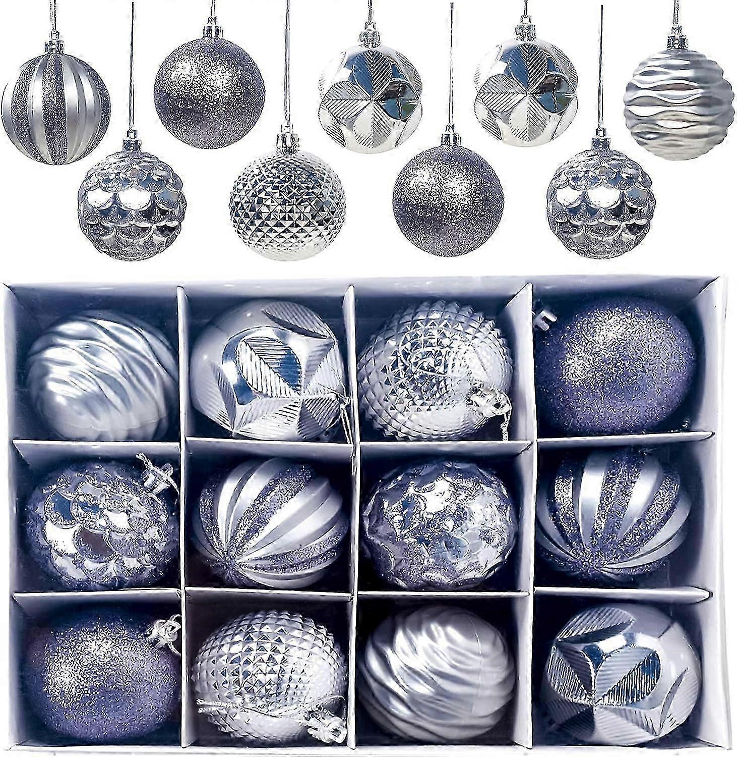 Christmas Balls, 12 Pieces Christmas Tree Balls Christmas Balls, Christmas Tree Decorations Matte and Shiny Glittering Christmas Tree Balls 6CM (Silv