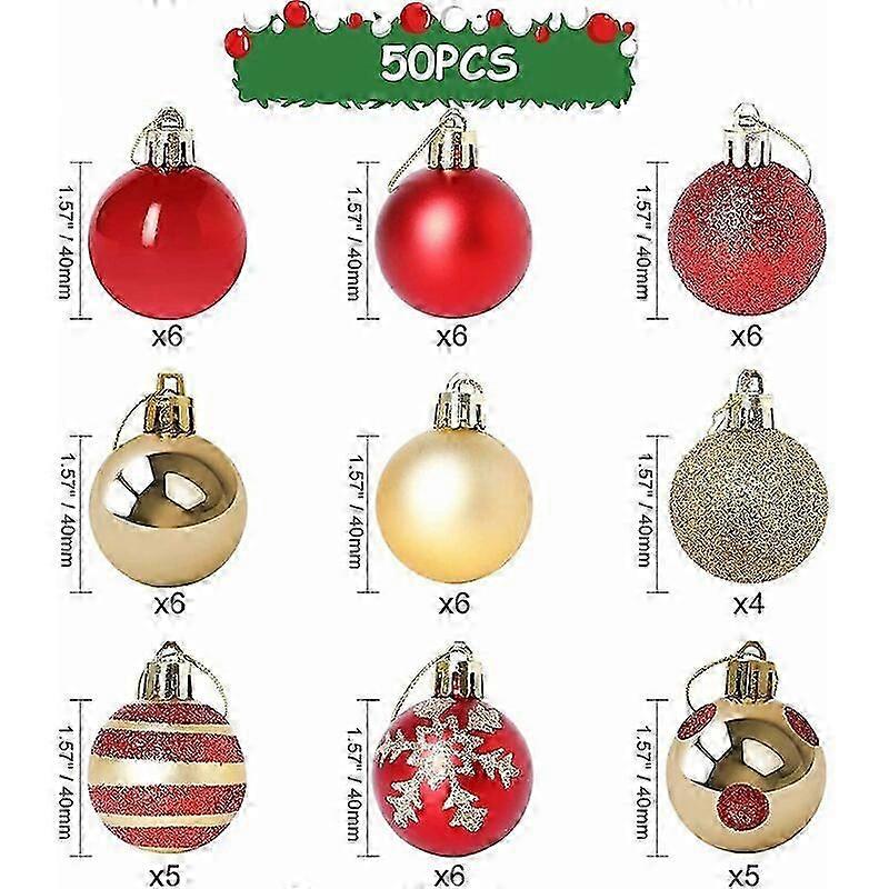 Christmas Balls, 50 Pcs Christmas Tree Decoration Christmas Balls with Red and Gold Christmas Ball,Christmas Tree Decoration Christmas Balls with Lany