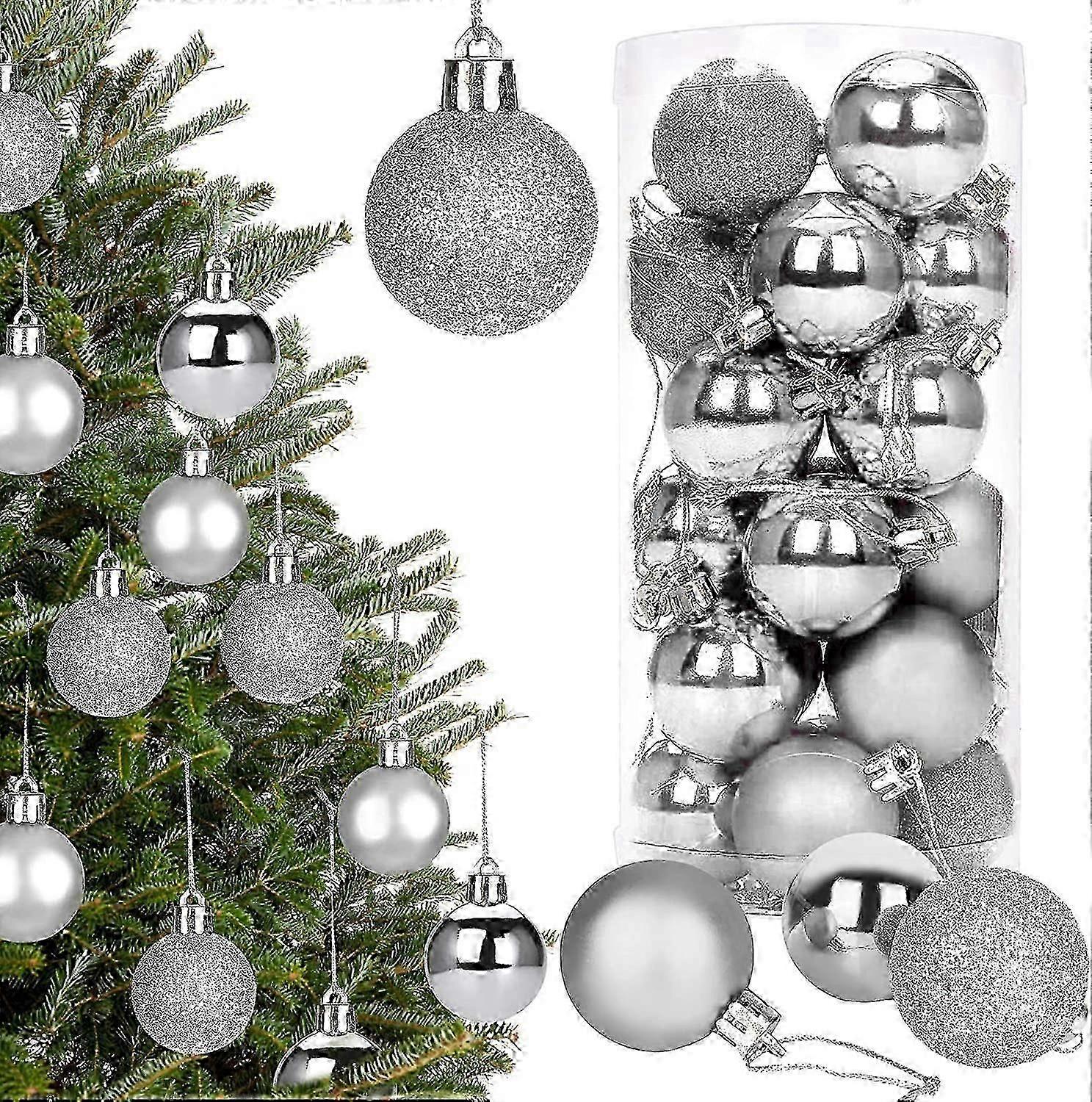 Christmas Balls, Christmas Tree Balls Set with 24 Pieces 4CM Christmas Balls Ornaments Decorations, Tree Decorative Balls, Festival Traditional Christ