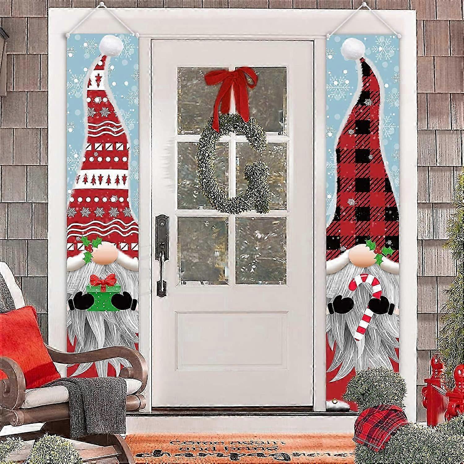 Christmas Banners - Gnomes Porch Sign Banners - Xmas Holiday Decor for Outside Indoor Yard Home Front Door Garage Wall