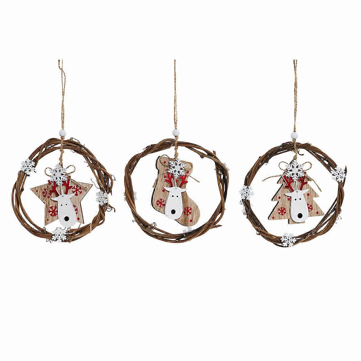 Christmas bauble DKD Home Decor Wood (3 pcs) (14 x 1 x 18 cm)