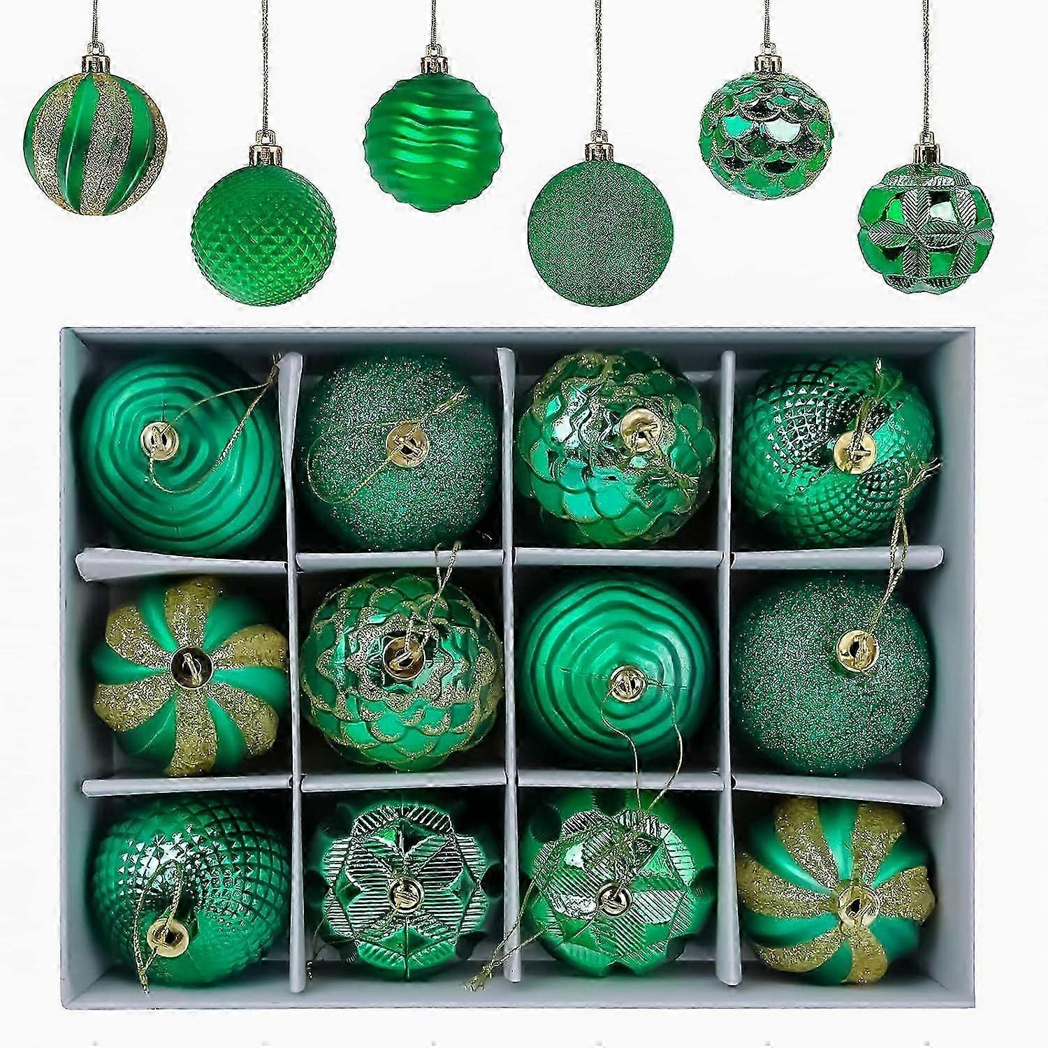 Christmas baubles, 12 pieces Christmas tree baubles Christmas baubles, matt and glossy Christmas tree decorations 6 cm (green)