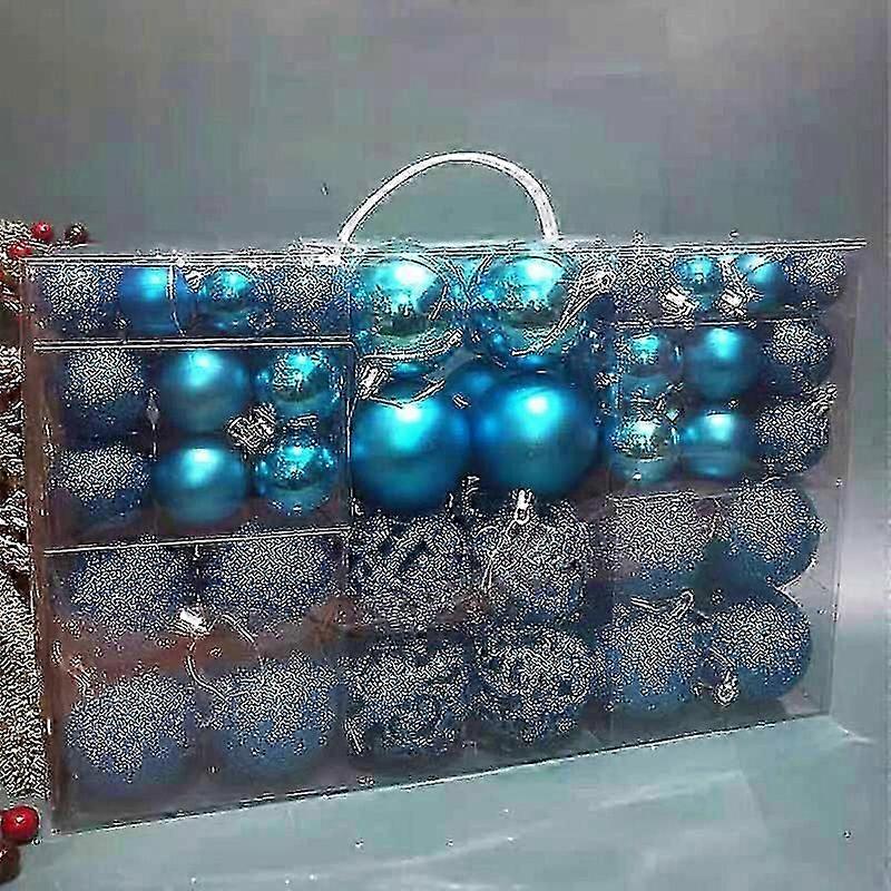 Christmas Baubles Decoration Christmas Tree, Unbreakable Plastic Christmas Baubles Box with Hanger, Decorative Ornaments Gift Pendants (Lake Blue)100