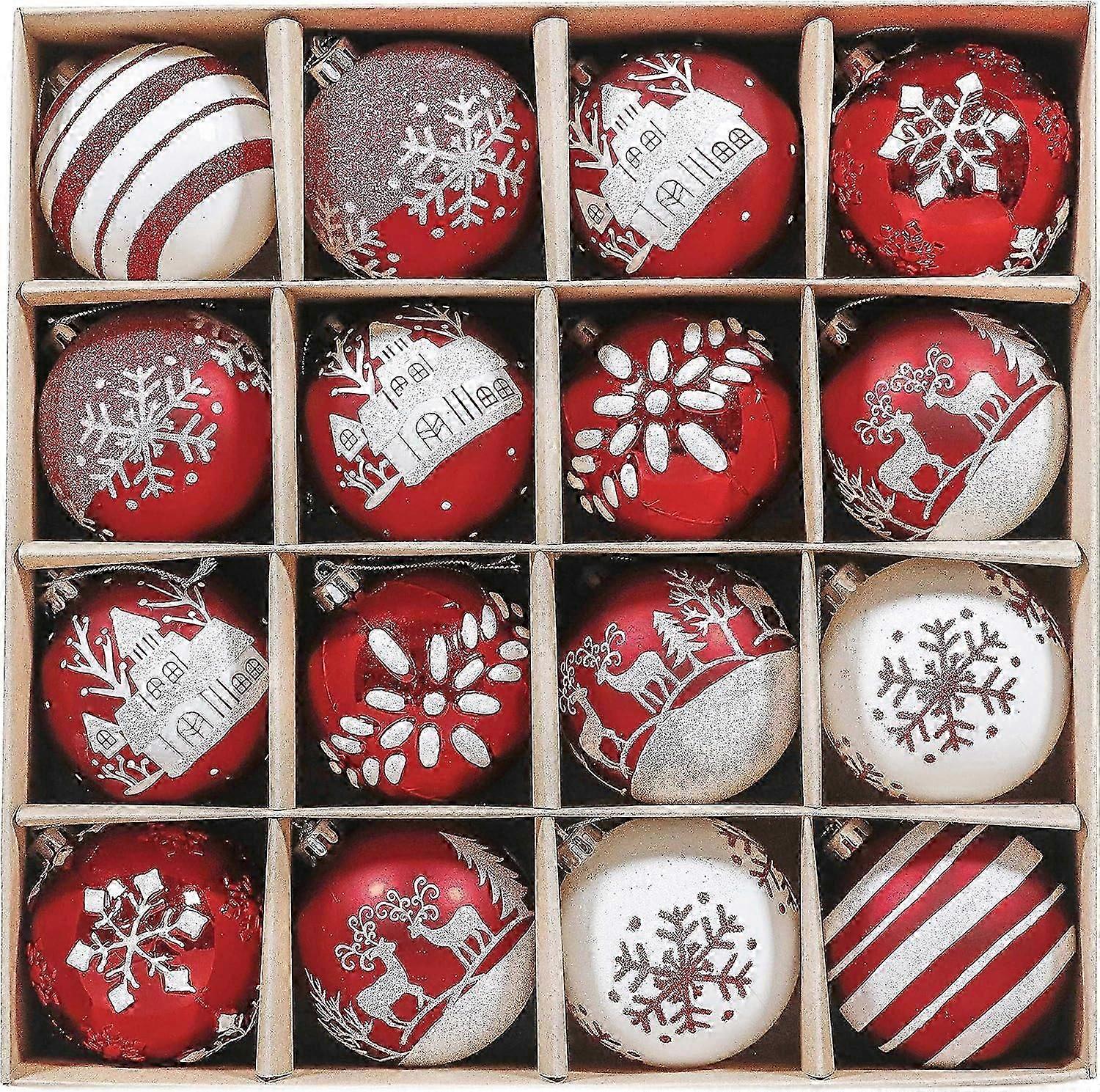 Christmas Baubles for Christmas Tree Decorations, 16pcs 8cm Red and White Shatterproof Giant Baubles for Christmas Tree Balls Ornaments for Xmas Decor