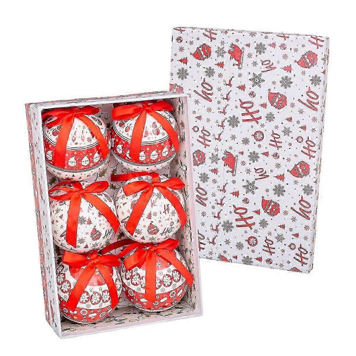 Christmas Baubles HO-HO White Red Paper Polyfoam 7,5 x 7,5 x 7,5 cm (6 Units)