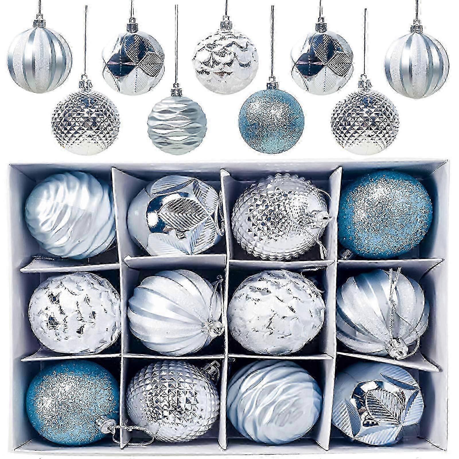 Christmas baubles, pack of 12 Christmas tree baubles, Christmas tree decorations, matt, shiny, glittering Christmas tree baubles, diameter 6 cm, blue