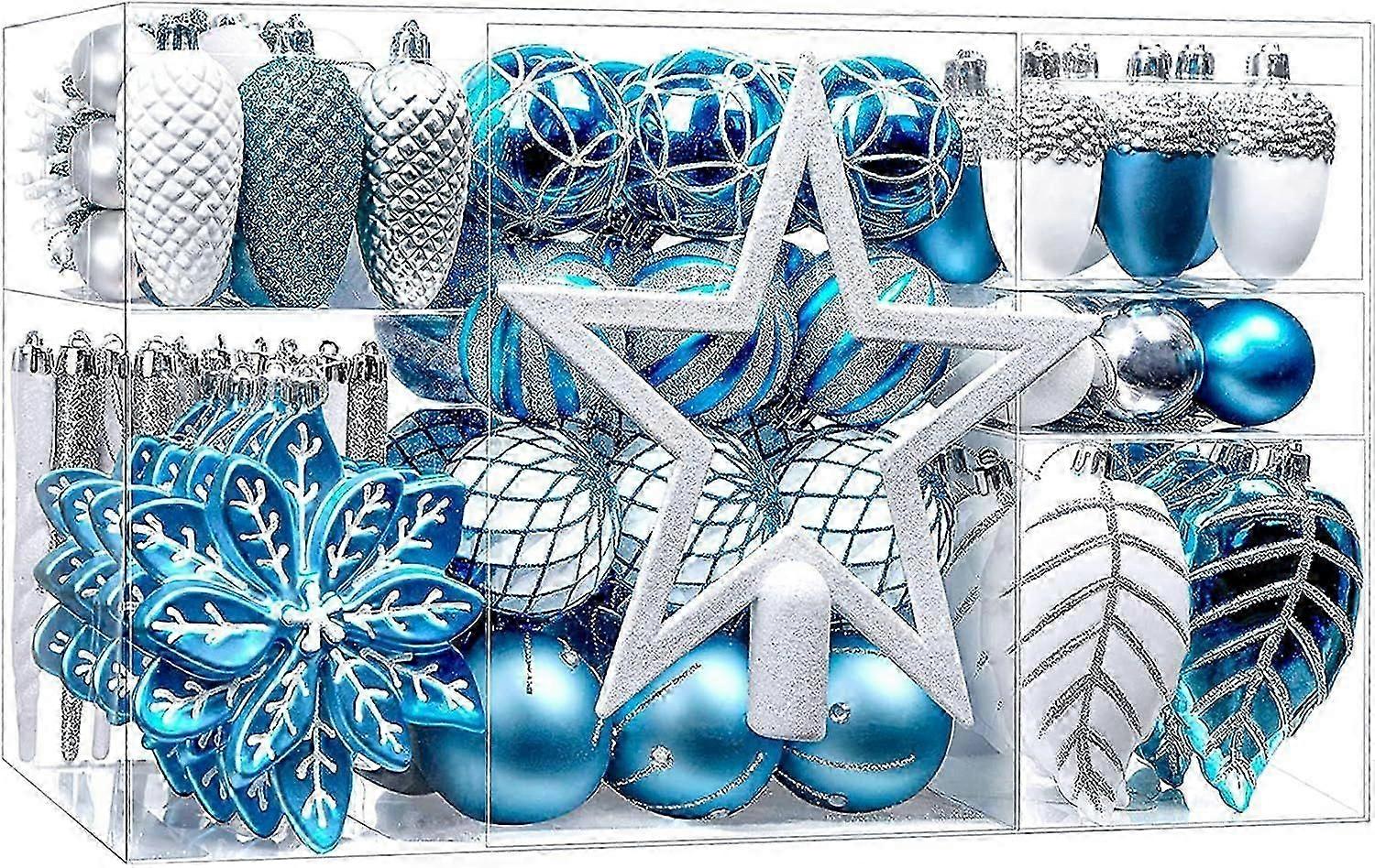 Christmas Baubles SetBlue and white silver, 106 pcs Great Decorations for Holiday Party Wedding