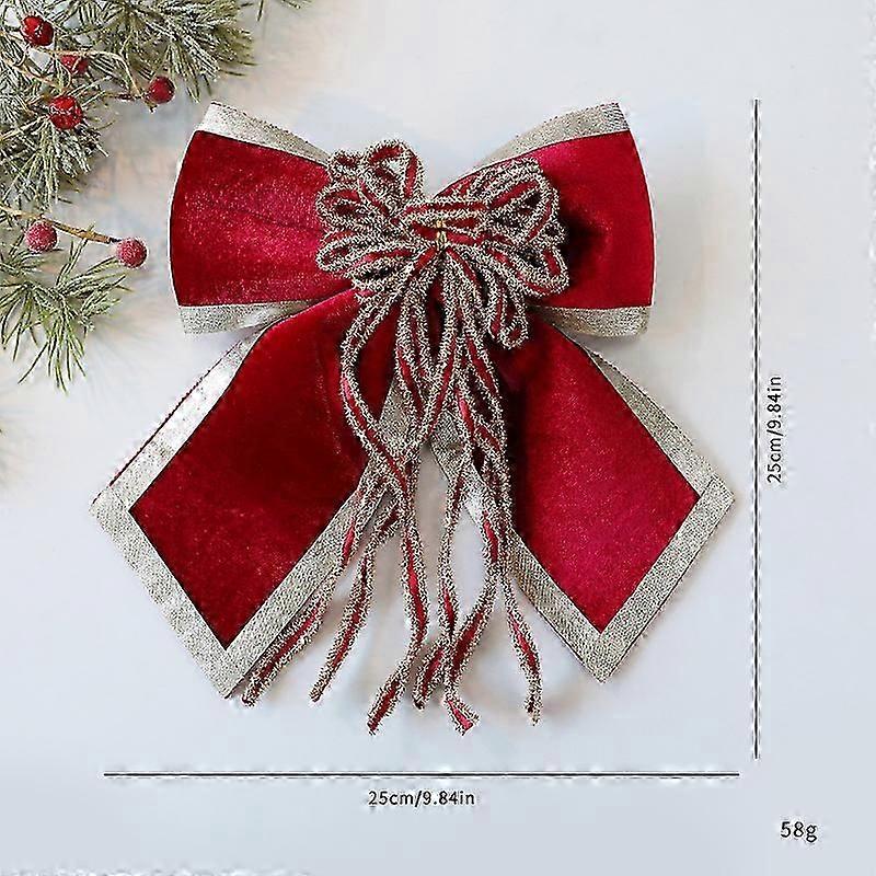 Christmas bow decoration pendant Christmas scene layout fabric Christmas tree decoration bow wine red ribbon 25cm