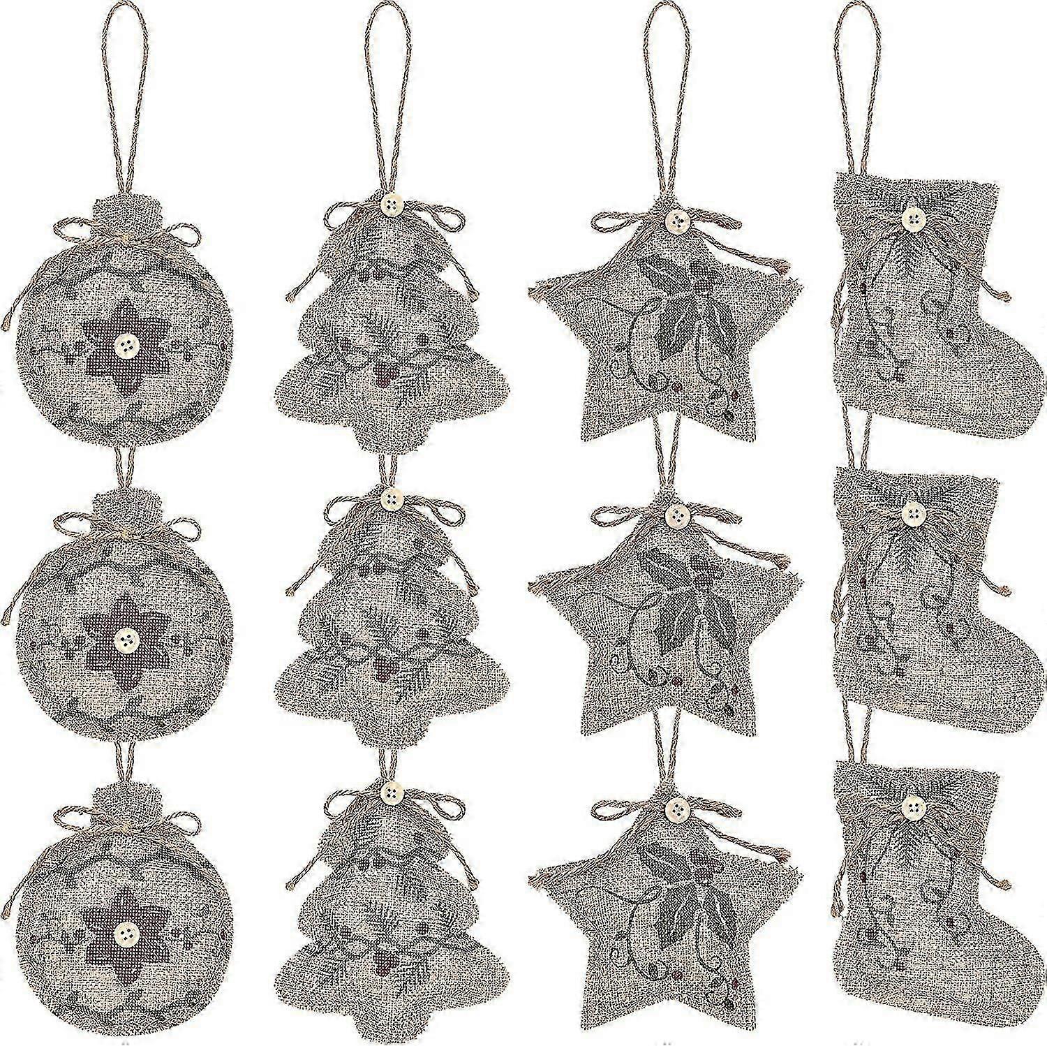 Christmas Burlap Tree Ornaments Hanging Decorations Christmas Stocking Tree Ball Shaped Decor For Christmas Party