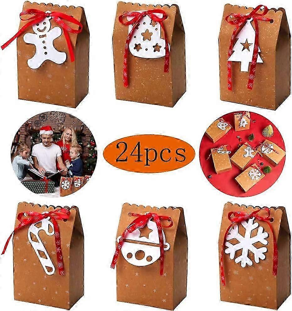 Christmas Candy Bag Large Kraft Paper Ribbon Gift Box (Random) 24 Pieces